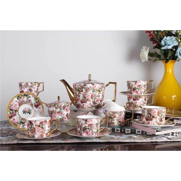 Flat Bottom Commodious Handle British Floral Ceramic Tea Sets Images |